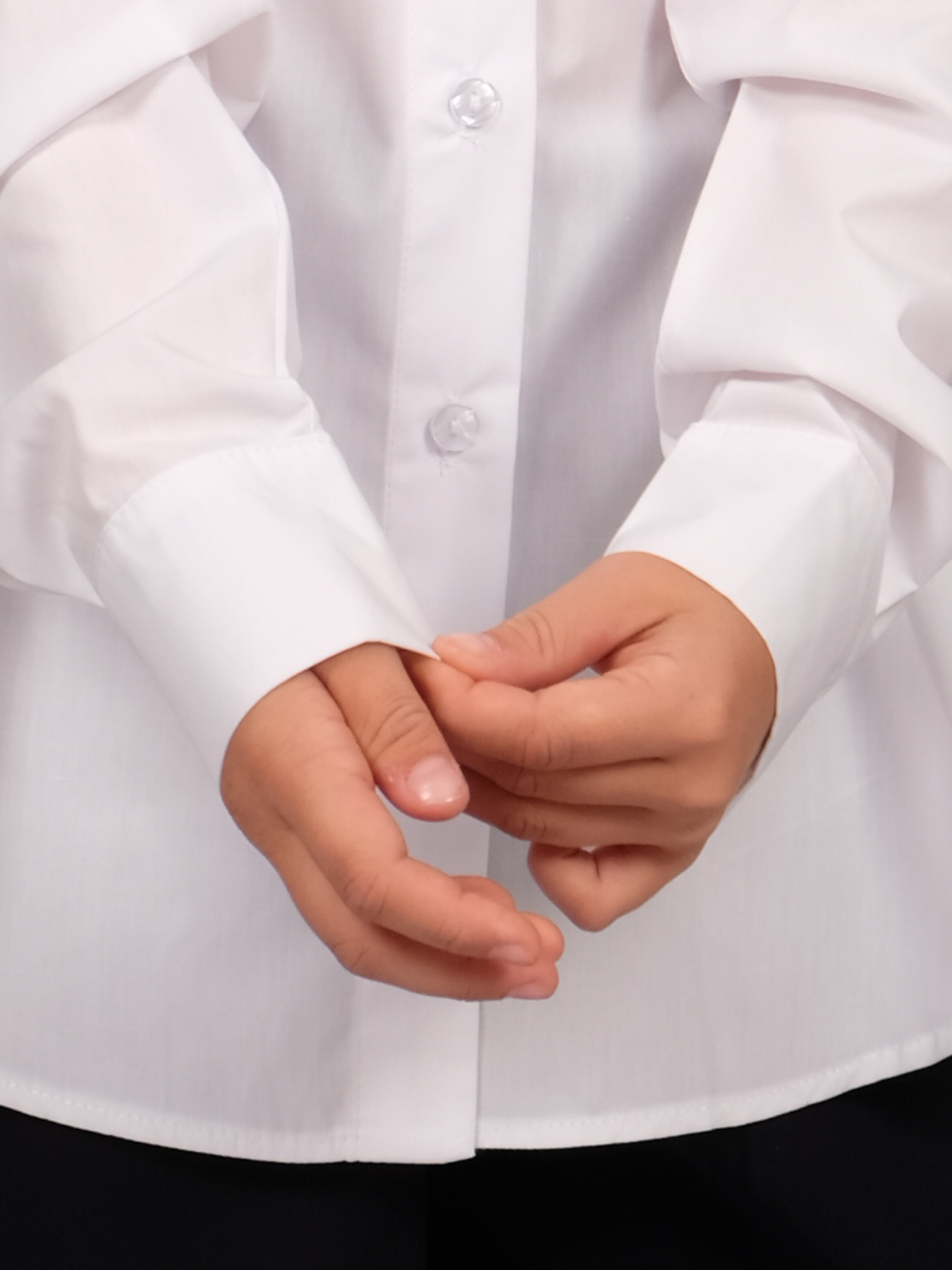Школьная рубашка для девочки оптом. Модель объемная, прямого кроя, застегивается на пуговицы, рукава с манжетами.