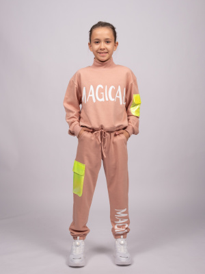 Практичный костюм TMK для девочки оптом состоит из футболки и бридж. Горловина футболки обработана эластичной бейкой. Лосины в поясе на резинке. Костюм изготовлен из трикотажа кулирка - нежного и мягкого, гипоаллергенного и легкого в уходе. Модель прекрасно подойдет для повседневной носки на улице или дома, для детского сада, а так же для активного отдыха и занятий спортом.