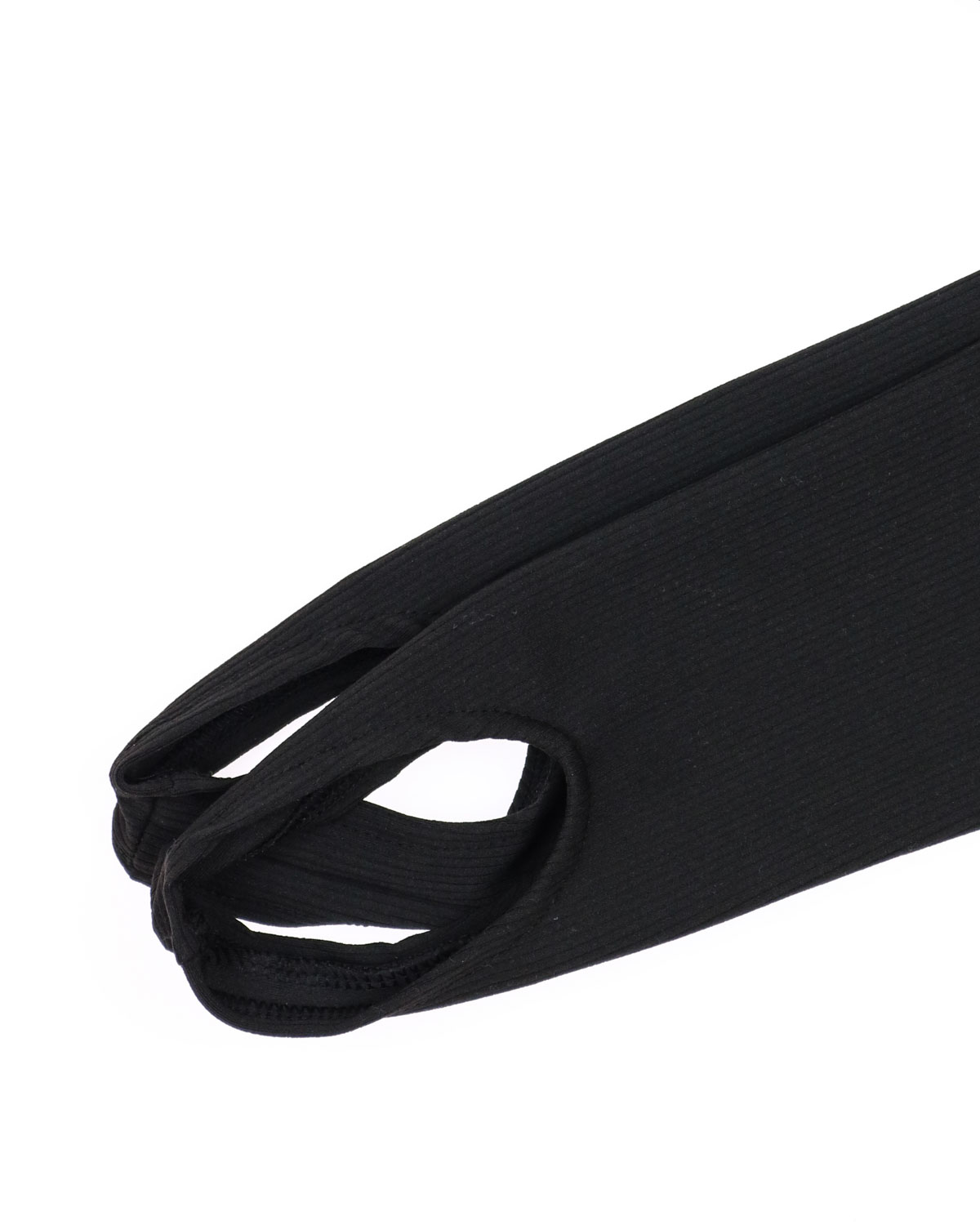 Леггинсы со штрипками. Черные лосины с эластичным поясом-резинкой. Широкие штрипки по низу. Смесовая ткань "рубчик" с матовой фактурой.