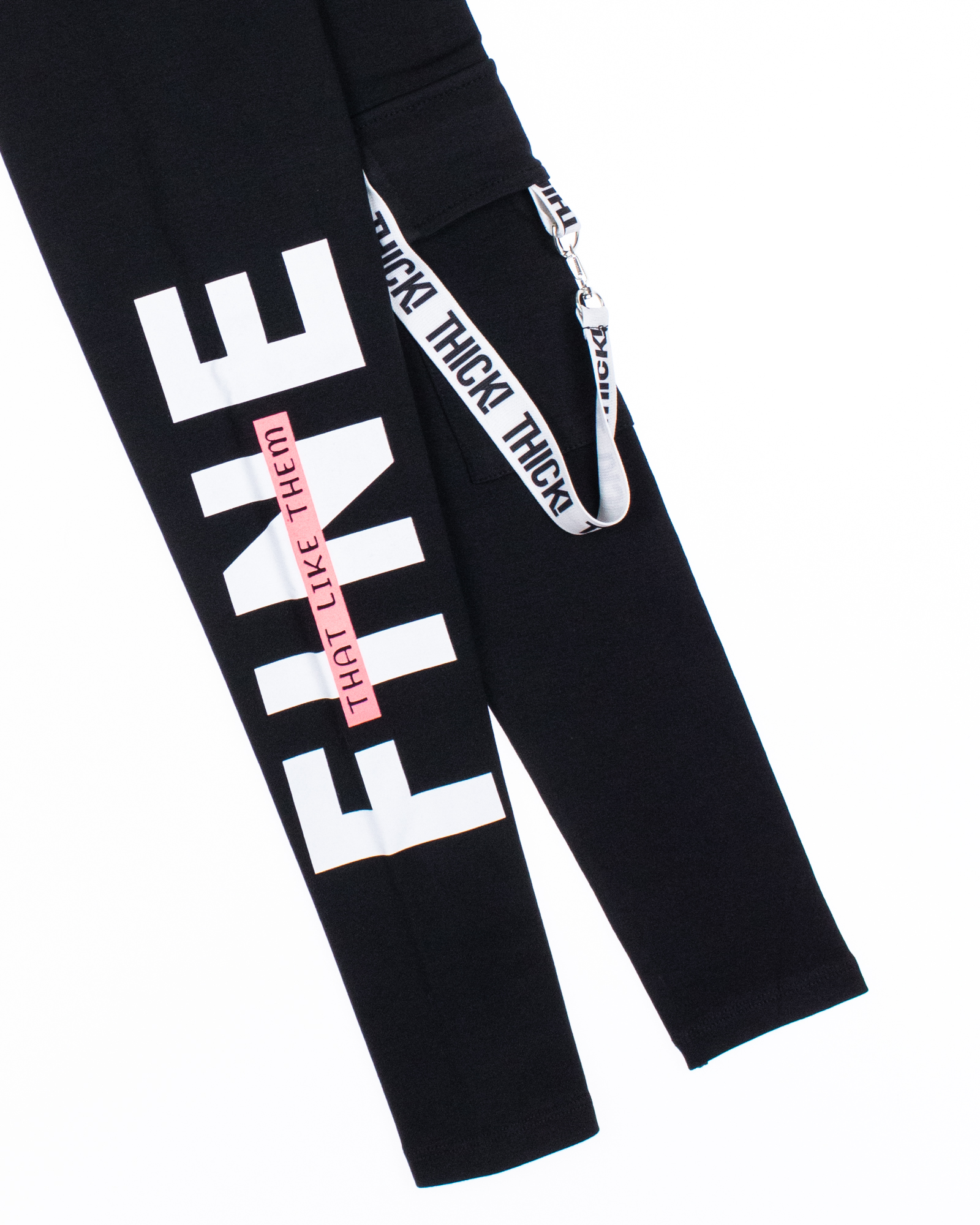 Плотные лосины Yesmina оптом. Лосины украшены печатным принтом, съемным ремнем, сбоку пришит накладной карман.