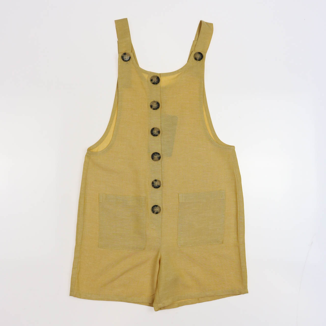 Летний комбинезон — очень удобная и практичная вещь. С ним не надо задумываться как подобрать верх к низу, так как это уже полноценный наряд. Комбинезон на лямках, застегивается на пуговицы, дополнен накладными карманами.