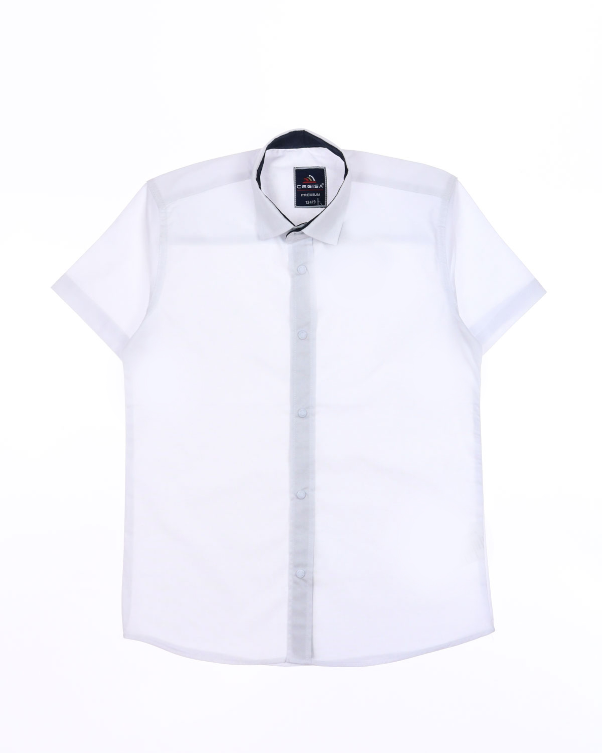 Рубашка Cegisa для мальчика оптом. Модель приталенного кроя с короткими рукавами, классическим отложным воротничком, застегивается на кнопки.