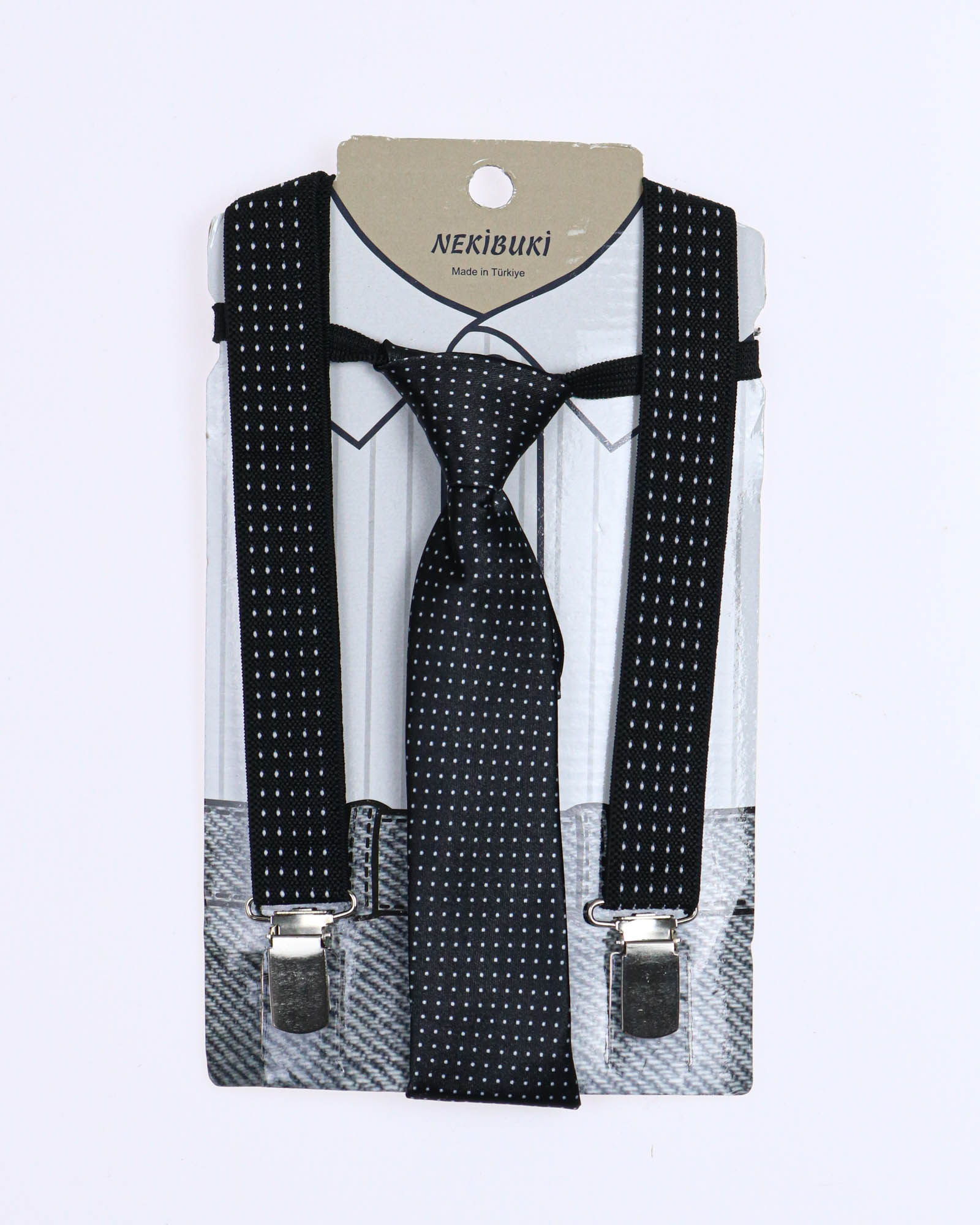 NEKIBUKI 1071 Набор подтяжки + галстук (цвет: Черный\салатовый)
