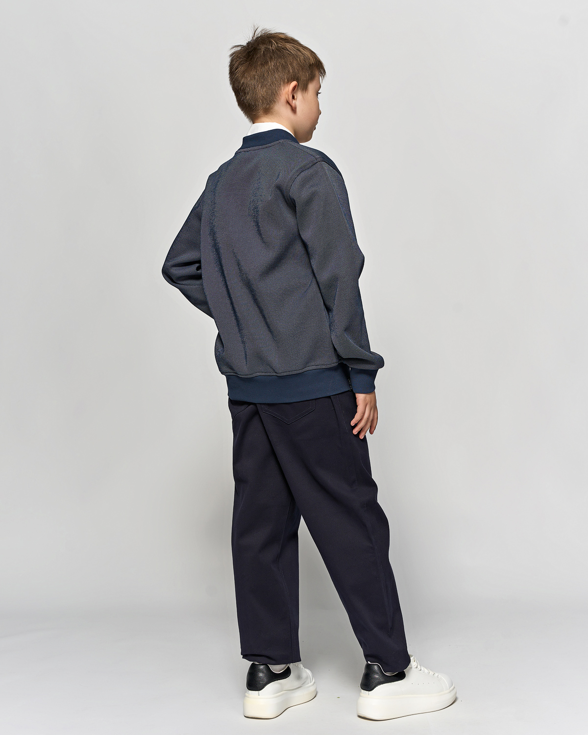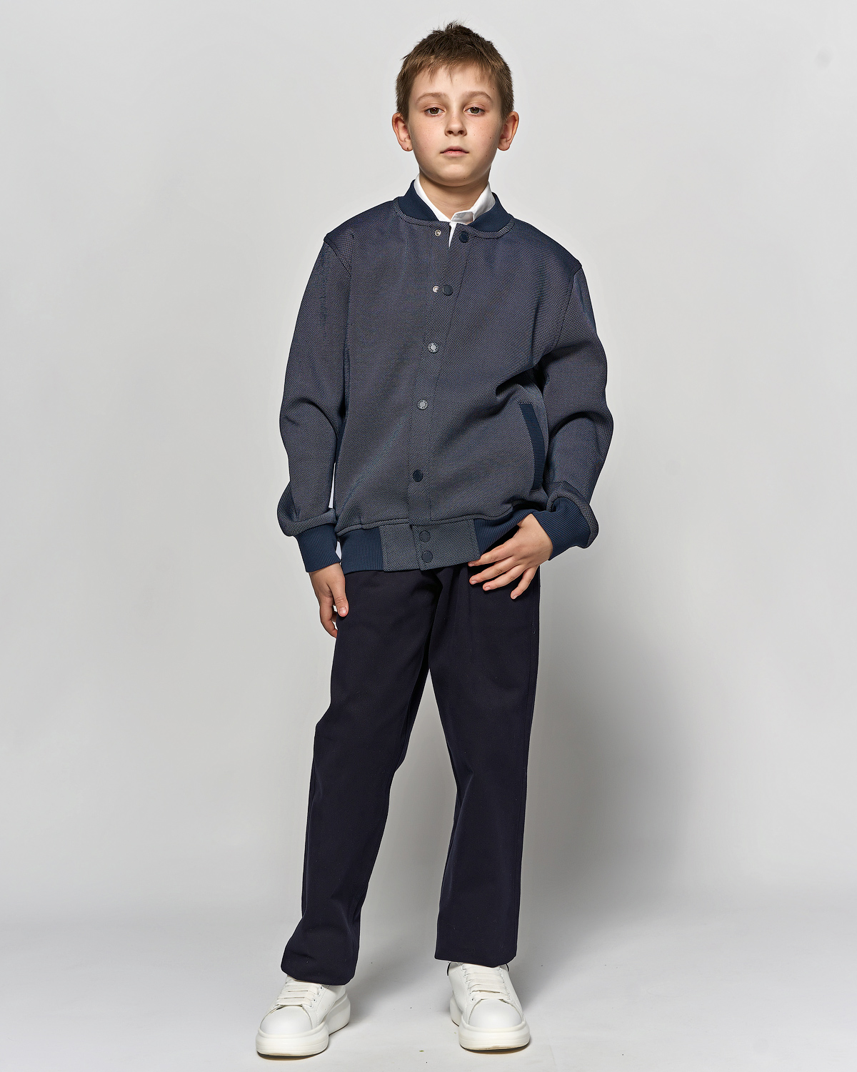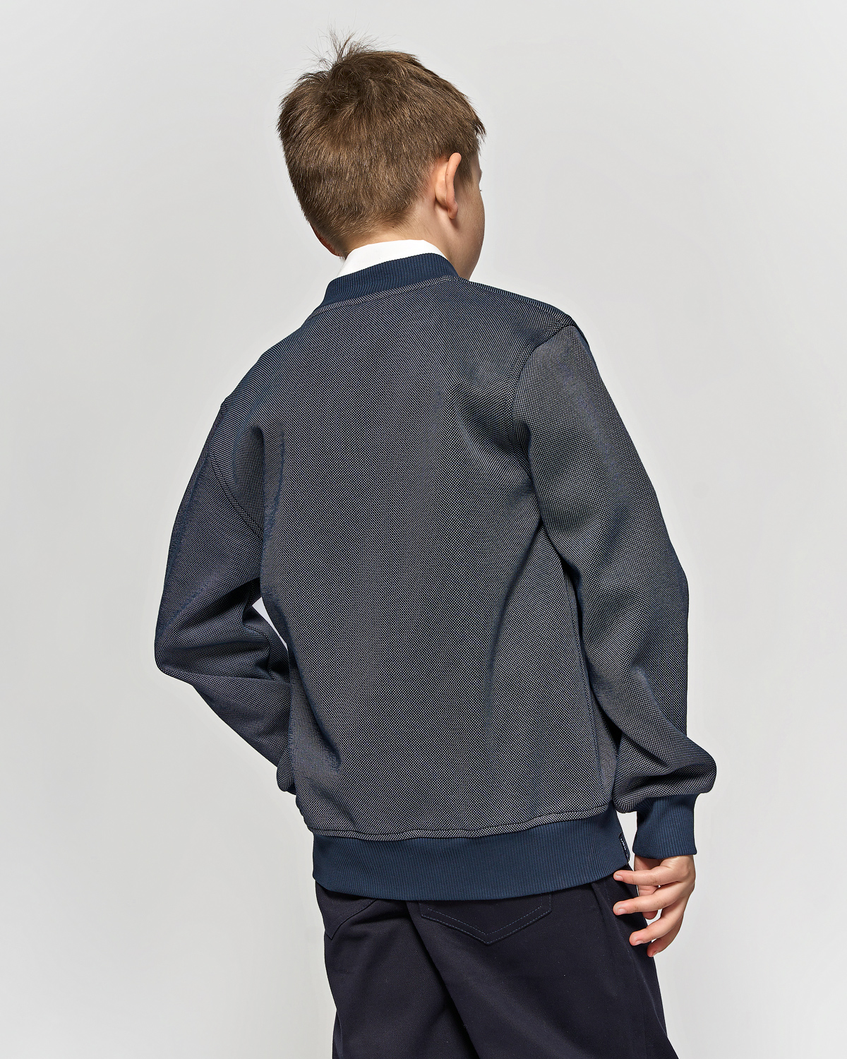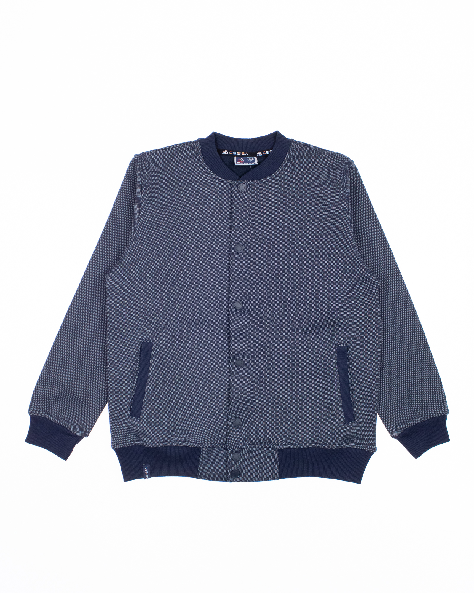 Трикотажный бомбер Cegisa для мальчика оптом. Выполнен из смесовой ткани, в составе которой натуральный хлопок с  добавлением полиэстера. Воротник стойка. Низ изделия и рукава на трикотажном манжете. Вместительные карманы и разъемная застежка - кнопки. Хорошо сохраняет цвет и форму при длительной носке и после многократных стирок. Прекрасно будет смотреться как школьная форма.