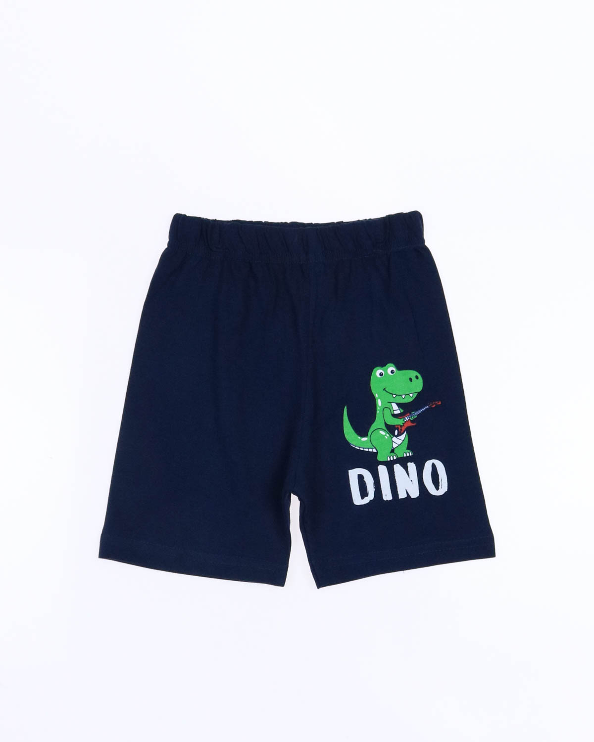 Костюм для мальчика, состоит из футболки и шорт. Модель выполнена из хлопкового полотна и оформлена печатным принтом. Футболка прямого кроя, с округлым вырезом горловины. Ткань кулирная гладь.
