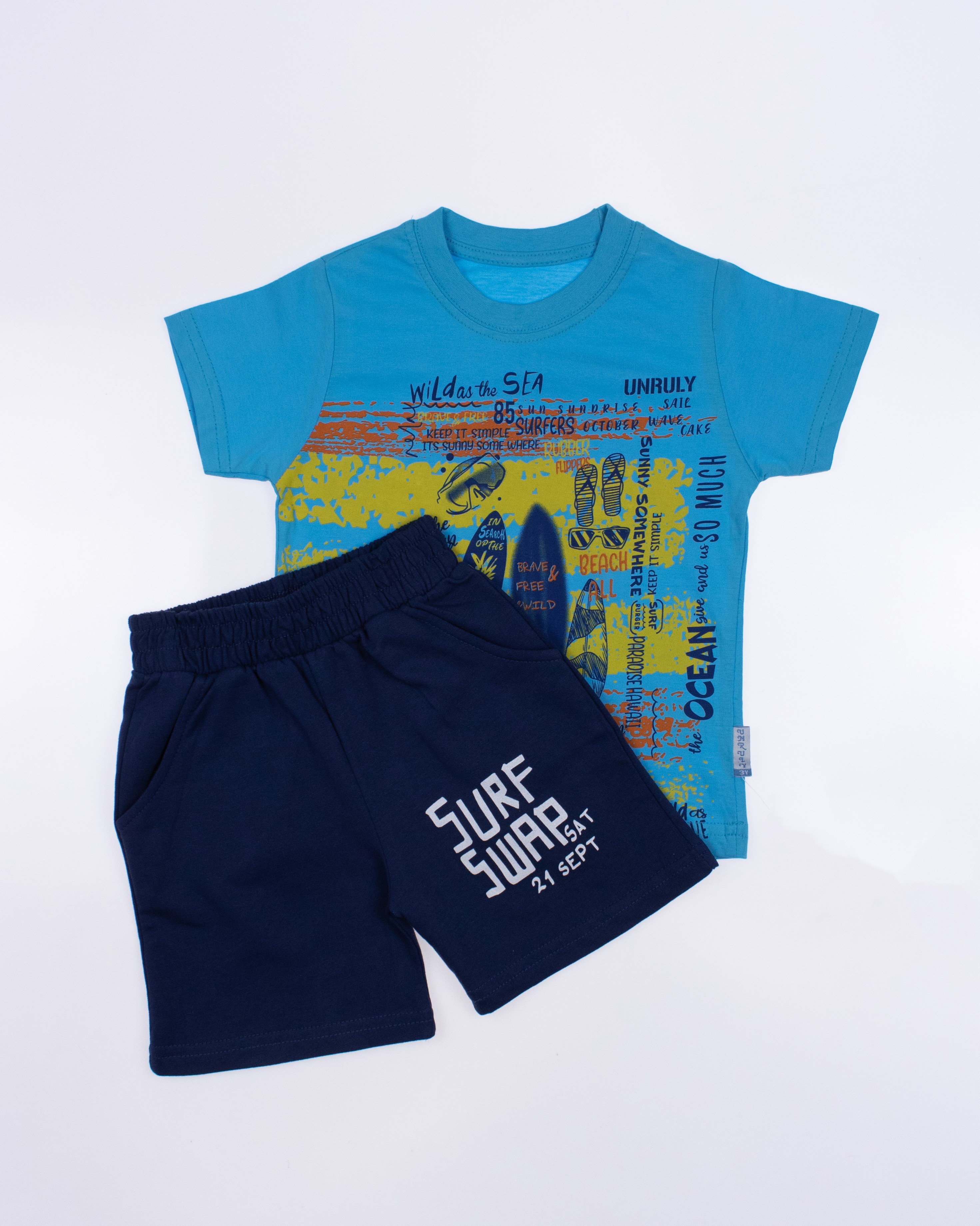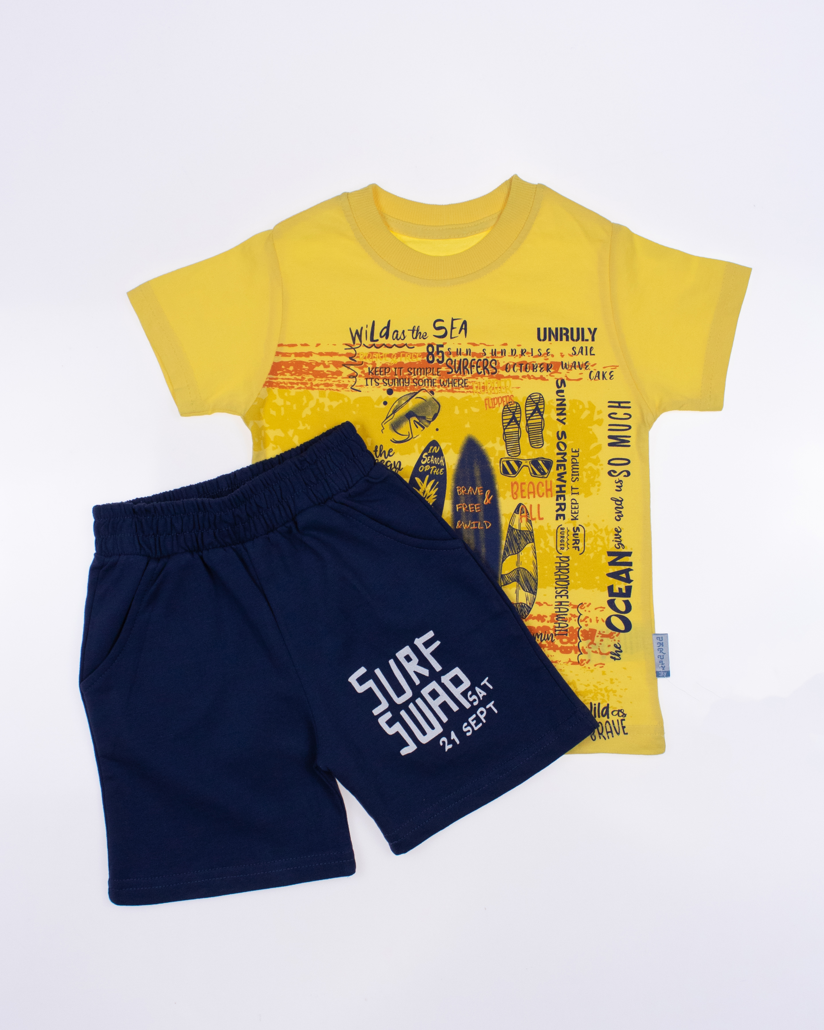 Детский костюм UNRULY выполнен из хлопкового полотна и оформлен печатным принтом. Футболка прямого кроя, с округлым вырезом горловины. Шорты умеренного объема, по бокам два вместительных  кармана.
