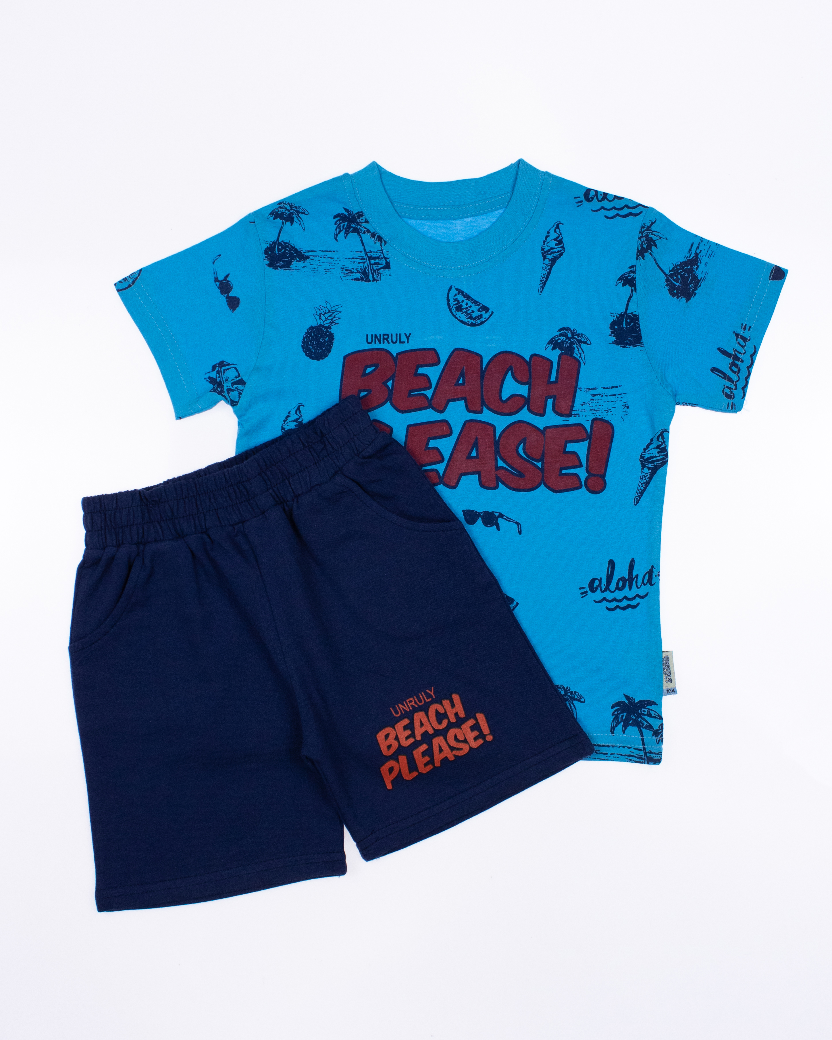 Детский костюм UNRULY выполнен из хлопкового полотна и оформлен печатным принтом. Футболка прямого кроя, с округлым вырезом горловины. Шорты умеренного объема, без  карманов.