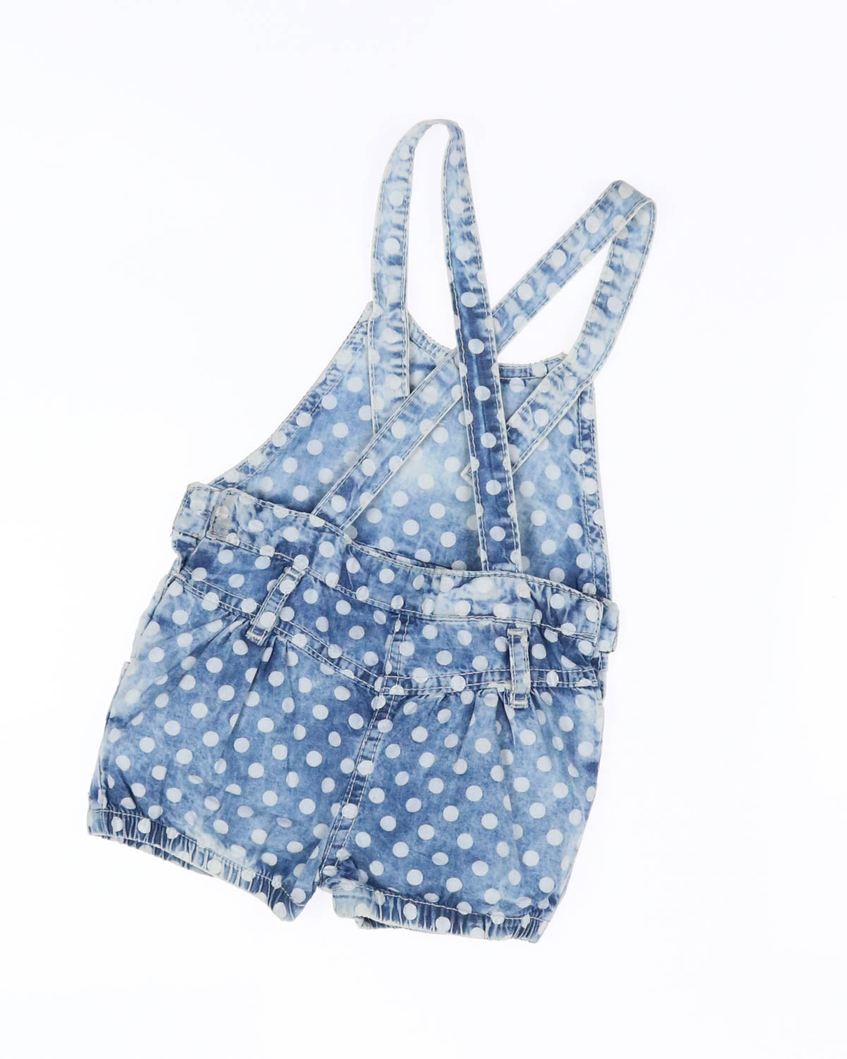 Комбинезон выполнен из тонкой джинсы.На груди аппликация в виде котика. Шорты имеют два боковых кармана.