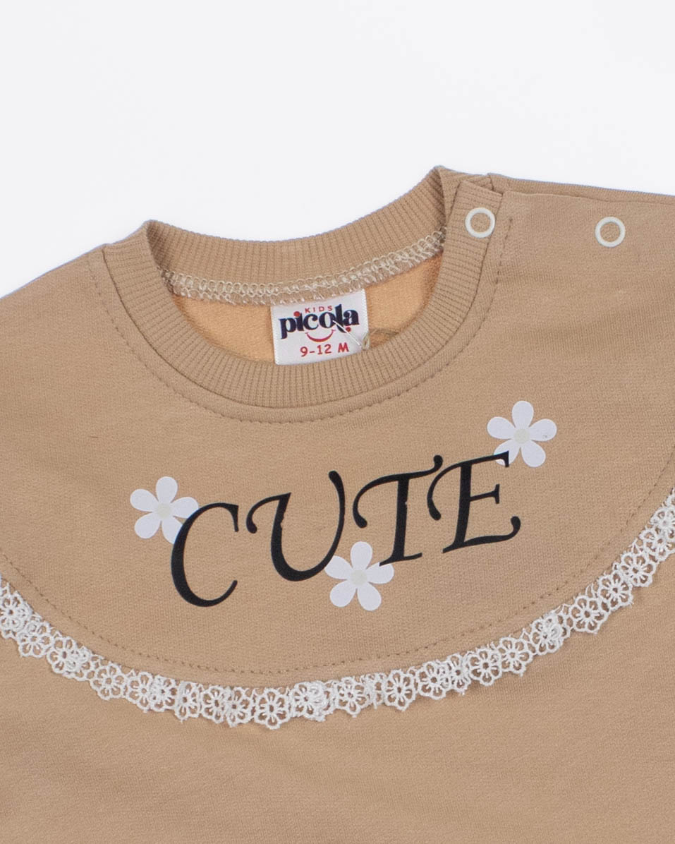 Мы предлагаем оптовые продажи детской одежды производства Турция. Хлопковый костюм PICOLA выполнен из 100% хлопка, что гарантирует комфорт и безопасность для самых маленьких детей. Свитшот имеет удобную застежку-кнопки на плече, что облегчит процесс надевания и снятия одежды. Штанишки с мягкими манжетами на эластичном поясе идеально подходят для ношения с подгузником, обеспечивая свободу движений и комфорт. Детский милый принт на костюме поможет развить фантазию и воображение ребенка, делая его образ ярким и запоминающимся. Костюм PICOLA - отличный выбор для маленьких модниц и их заботливых родителей. Не упустите возможность приобрести этот уникальный товар оптом по выгодной цене!