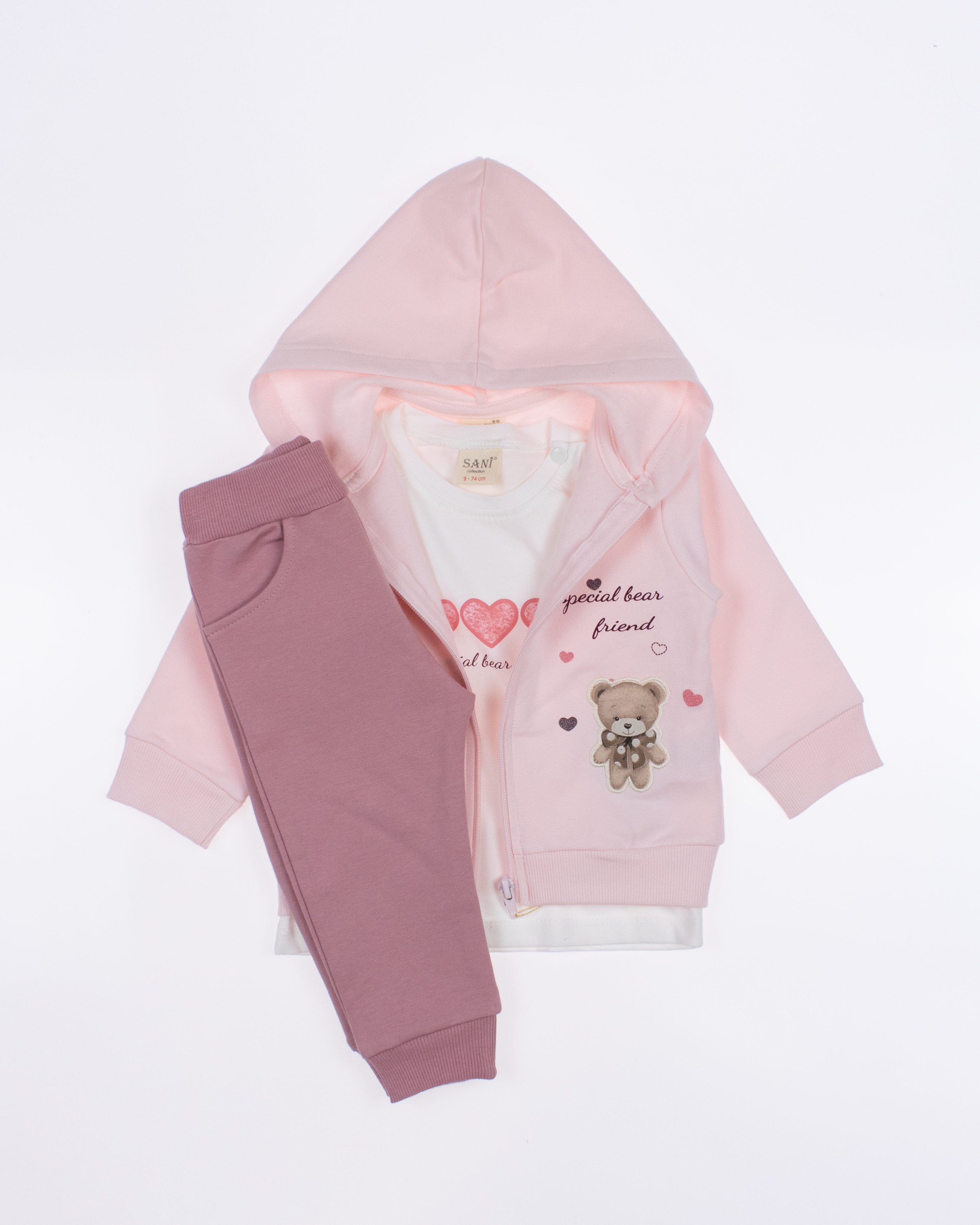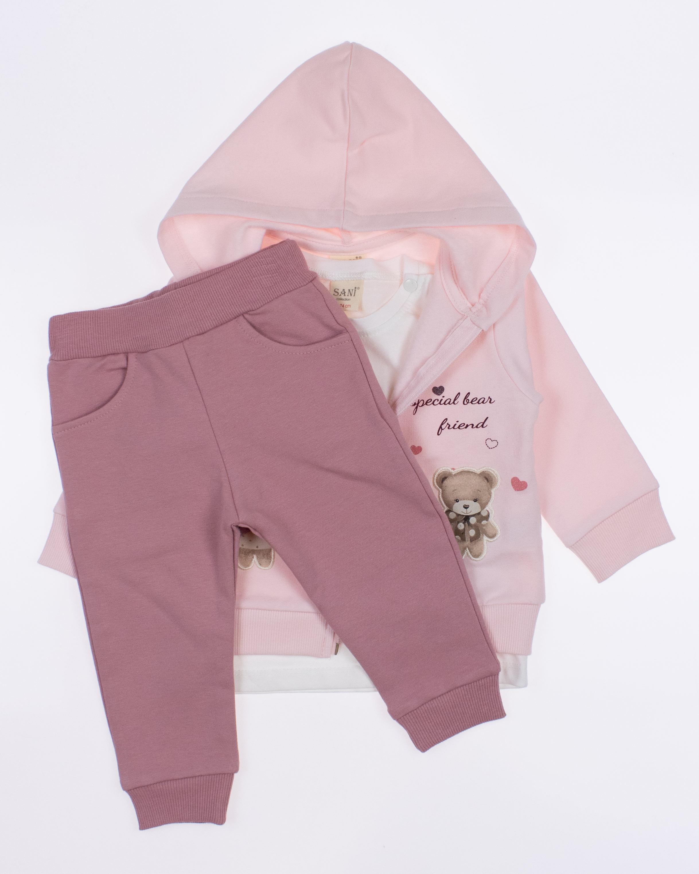Теплый спортивный ясельный костюм оптом— это идеальный выбор для маленькой модницы. Он состоит из трех стильных предметов, которые обеспечивают как комфорт, так и опрятный внешний вид. Костюм выполнен из качественного трикотажа с начесом.
