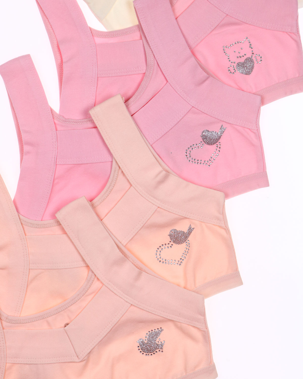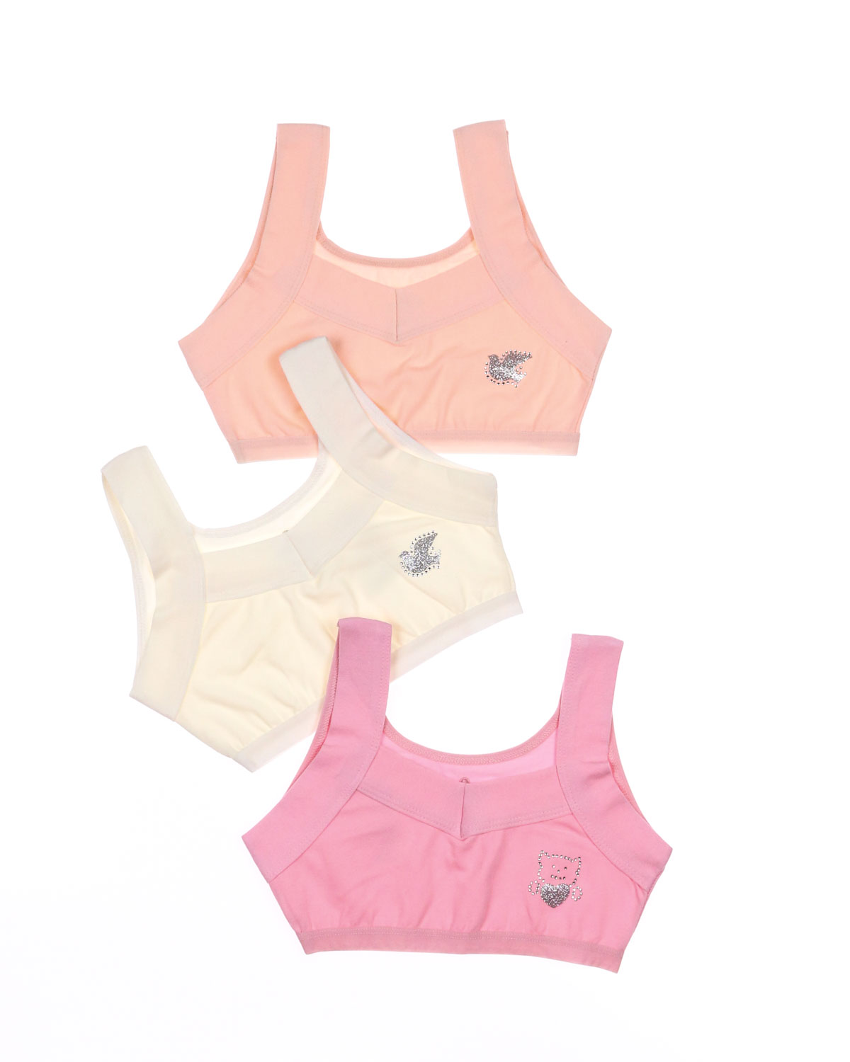 Бюстье для девочки изготовлено из кулирки гладкого, приятного к телу материала. Хорошо тянется благодаря добавлению эластана. Бюстье для девочки очень комфортно для повседневной носки. Гипоаллергенная ткань приятно прилегает к телу, впитывая излишки влаги, пропуская воздух. Современная технология пошива обеспечивает изделиям высокие качественные характеристики и идеальный комфорт. Очаровательный дизайн и милый блестящий принт смотрятся невероятно нежно.