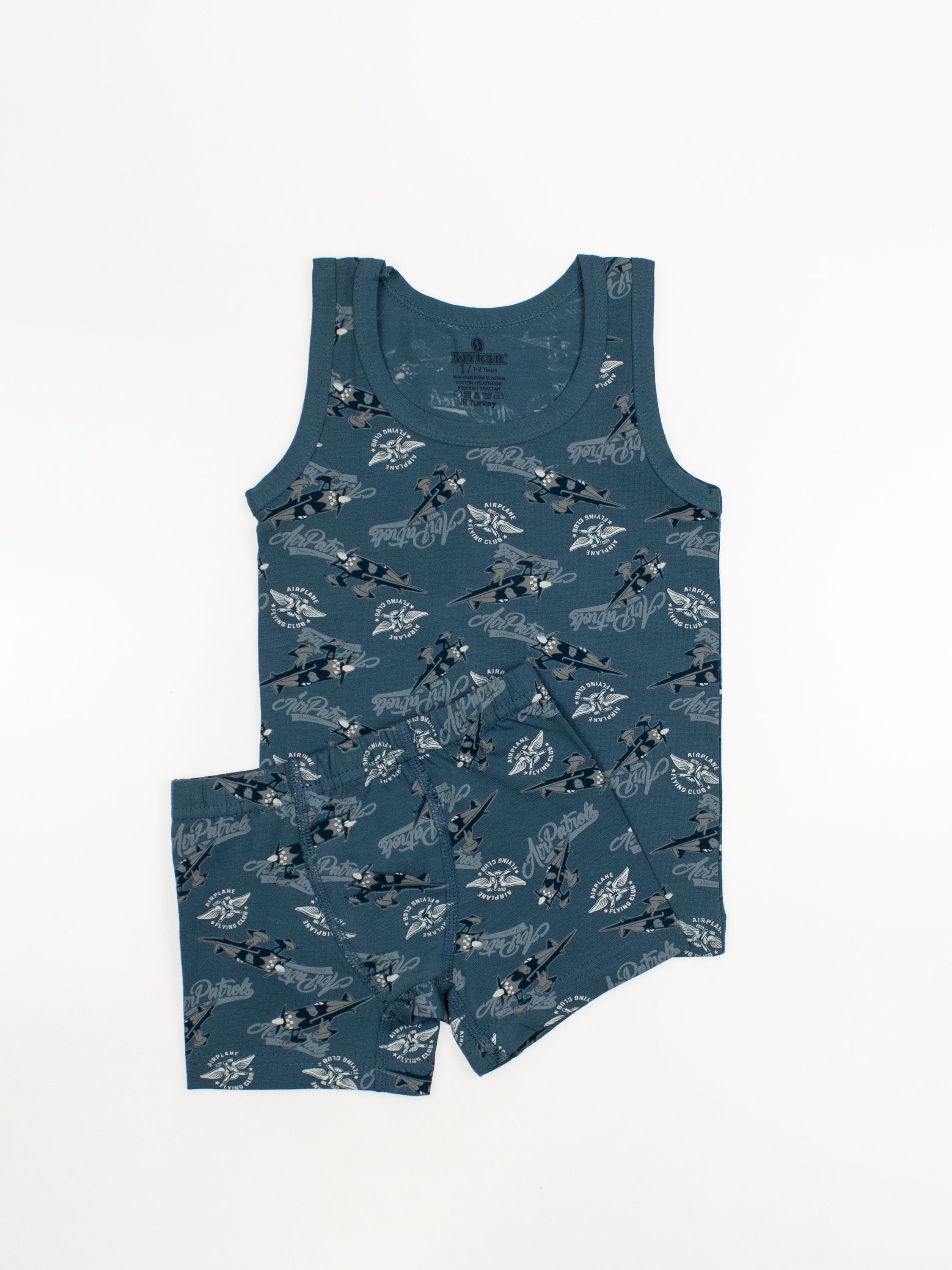 Костюм для мальчика  от турецкого бренда BAYKAR - это гарантия комфорта, практичности и стильного дизайна. Изделия изготовлены из качественного хлопкового трикотажного полотна с добавлением прочной эластановой нити, не требуют особого ухода, не линяют и не растягиваются после стирки. Особенности моделей - классический крой, популярные расцветки и принты - делают майки универсальными в носке: их можно использовать как нательное белье, домашнюю одежду или как часть повседневного летнего гардероба.