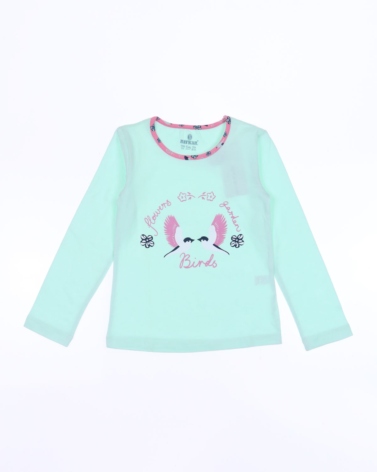 Пижама BAYKAR для девочки оптом с длинными рукавами и прямыми брюками без манжетов. Поверхность пижамки не закатается и не покроется пилями,  благодаря высокому качеству хлопка. Небольшое добавление эластана не позволит изделию сесть и не даст вытянуться.