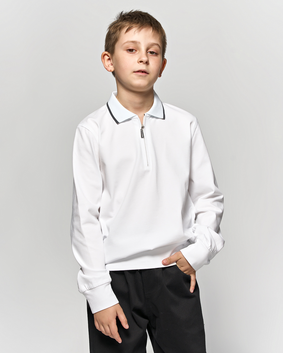 Поло Cegisa для мальчика оптом имеет прямой силуэт, застёжку-  молния, отложной воротник. Идеально подойдет на каждый день и в качестве  школьной формы. Поло не деформируется и не растягивается в процессе эксплуатации и после стирки, выполнено из трикотажа лакоста.