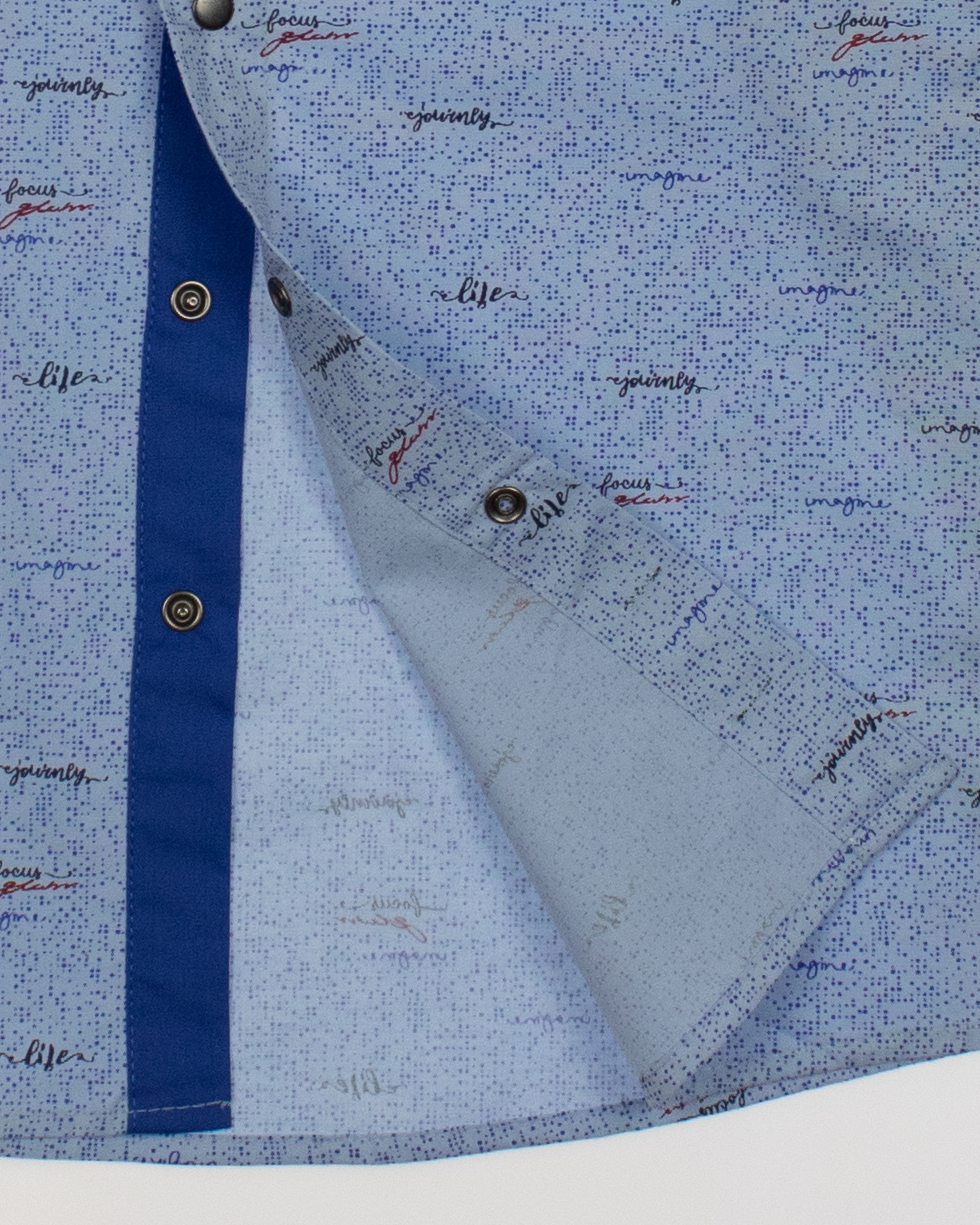 -Воротничок и манжеты внутри отделаны гладкой однотонной синей тканью, приятной на ощупь и износостойкой.